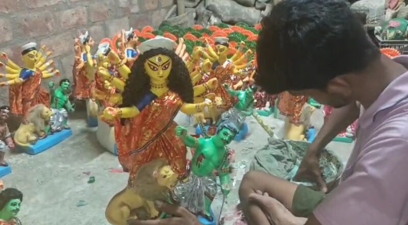 উৎসবকে কেন্দ্র করে বাড়িতে ঠাকুর পুজো করার আগ্রহ ক্রমশ বাড়ছে। তবে সময় ও ব্যয়ের কারণে অনেক পরিবার বড় মূর্তি স্থাপন করতে পারছেন না। তাই দিন দিন ছোট ও মাঝারি মূর্তির চাহিদা বেড়ে চলেছে। শুধু দেশেই নয়, বিদেশের বিভিন্ন প্রবাসী বাঙালি পরিবারও এখন ছোট আকারের দুর্গা মূর্তি অর্ডার করছেন। ফলে ব্যস্ত সময় কাটাচ্ছেন নদীয়ার শান্তিপুরের মৃৎশিল্পী গৌড় পাল।
