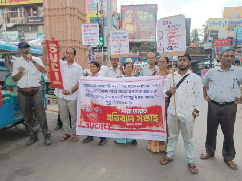 এই দাবিতে ২৫ থেকে ৩১ আগস্ট পর্যন্ত এসইউসিআই (কমিউনিস্ট) দলের পক্ষ থেকে সারাদেশে প্রতিবাদ সপ্তাহ পালনের কর্মসূচি গ্রহণ করা হয়েছে।