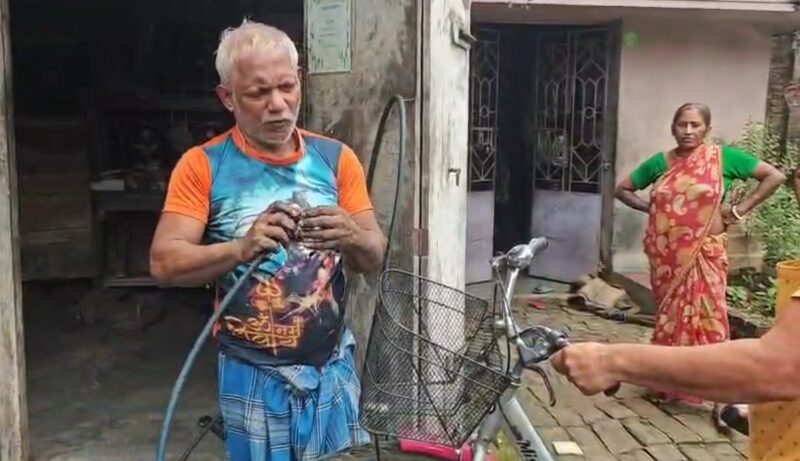 মলয় দে নদীয়া:-বিশ্বকর্মা পুজোর দিন আমাদের সংবাদ মাধ্যম পৌঁছেছিল জীবন্ত বিশ্বকর্মার খোঁজে! উঠে এলেন নদীয়ার শান্তিপুরের বাথানগাছি গ্রামের ১০০% দৃষ্টিহীন ৬৫ বছর বয়সি কৃষ্ণ ধন সরকার। আগে তিনি সাইকেল মিস্ত্রি ই ছিলেন ১২ নম্বর জাতীয় সড়কের কাছে ছিল দোকান তবে ১০-১২ বছর আগে দৃষ্টি শক্তি হারিয়ে যাওয়ার পর বাড়িতেই খুলেছেন দোকান।