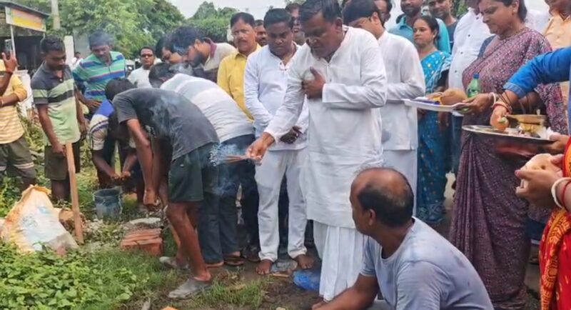 মলয় দে নদীয়া:-বহু প্রতীক্ষিত প্রাচীন জনপদ শ্রীধাম শান্তিপুর বাসীর আকাঙ্খার বাস্তবায়ন হতে চলেছে। শান্তিপুরে প্রবেশ এবং প্রস্থানের পথে বসতে চলেছে তোরণ। সূত্রের খবর শান্তিপুর শহরে প্রবেশ এবং প্রস্থানের দুটি ত তোরণ নির্মাণের পরিকল্পনা এর আগেও হয়েছে তবে বাস্তবায়ন করলেন বিধায়ক। তবে তিনি প্রবেশ এবং বাহির হিসেবে নয় শান্তিপুরের দুই প্রান্তে দুটি তোরণ নির্মাণ করতে চলেছেন বলেই জানিয়েছেন তারমধ্যে প্রথম তোরণ টি তৈরীর শিলান্যাস হয়ে গেল আজ শুক্রবার। শান্তিপুরের তৃণমূল বিধায়ক ব্রজ কিশোর গোস্বামী বিধায়ক উন্নয়ন তহবিলের অর্থানুকুলে প্রায় সাড়ে ১১ লক্ষ টাকা ব্যয়ে শান্তিপুর গোবিন্দপুর বাইপাস সংলগ্ন জায়গায় ভিত্তিপ্রস্তর স্থাপনের মধ্যে দিয়ে উত্তরবঙ্গ থেকে শান্তিপুরে প্রবেশের তোরণ নির্মাণ কাজ শুরু হল। এদিন উদ্বোধক হিসেবে উপস্থিত ছিলেন শান্তিপুর বিগ্রহ বাড়ি সমন্বয় সমিতির প্রতিনিধি স্বরূপ গোস্বামী, শান্তিপুরের বিধায়ক ব্রজকিশোর গোস্বামী, জেলা পরিষদের সদস্য বাসন্তী সরকার, স্থানীয় বাবলা পঞ্চায়েতের উপ-প্রধান এবং পঞ্চায়েত সদস্যদের সহ এলাকার সাধারণ মানুষ জন। এ বিষয়ে