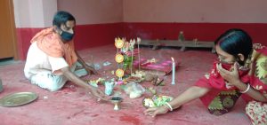 তবে এলাকার বয়স্ক ধর্মপ্রাণ মানুষদের বিশ্বাসে কোন রকমে পূজিত হচ্ছে ঘট। এলাকার পুরোহিত তাপস চক্রবর্তী, নিলাপদ চ্যাটার্জি জানান আজ লক্ষ্মী পূজা ও রামনবমীর পুজো একইসঙ্গে পড়লেও ডাক পাননি সেরকম।