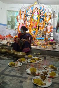 এই পরিস্থিতিতে দুর্গাপুজোতে করোনা সতর্কতায় অভিনব উদ্যোগ গ্রহণ করল নদীয়া জেলার কৃষ্ণনগরের স্টেশন সংলগ্ন স্বপ্নপুরী আবাসনের পুজো কমিটি। করোনা সতর্কীকরণ হিসেবে পুজো মন্ডপে বাইরের লোক ঢোকা নিষেধ। প্রতিবছর এই দিনে আবাসনের সদস্যবৃন্দ একসঙ্গে বসে খাওয়া-দাওয়া করেন কিন্তু এই বছরে সব বন্ধ রাখা হয়েছে। এমনকি অষ্টমী পুজোর ভোগও পৌঁছে দেওয়া হচ্ছে আবাসিকদের ঘরে ঘরে।