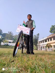নিউজ সোশ্যাল বার্তা, ২৮শে নভেম্বর ২০১৯ : নদীয়া জেলার বক্সিপুর থেকে সিকিমের গ্যাংটক এর উদ্দেশ্যে সাধারণ মানুষের মধ্যে স্বেচ্ছায় রক্তদান ও দূষন মুক্ত পৃথিবী গড়ে তোলার বার্তা ছড়িয়ে দিতে ২৭ নভেম্বর ২০১৯ সাইকেল যাত্রা শুরু করলেন রকি মন্ডল নামে এক তরুণ । পেশায় কম্পিউটার অপারেটর । সাধারণ মানুষকে সচেতন করাই তার মূল লক্ষ্য ।